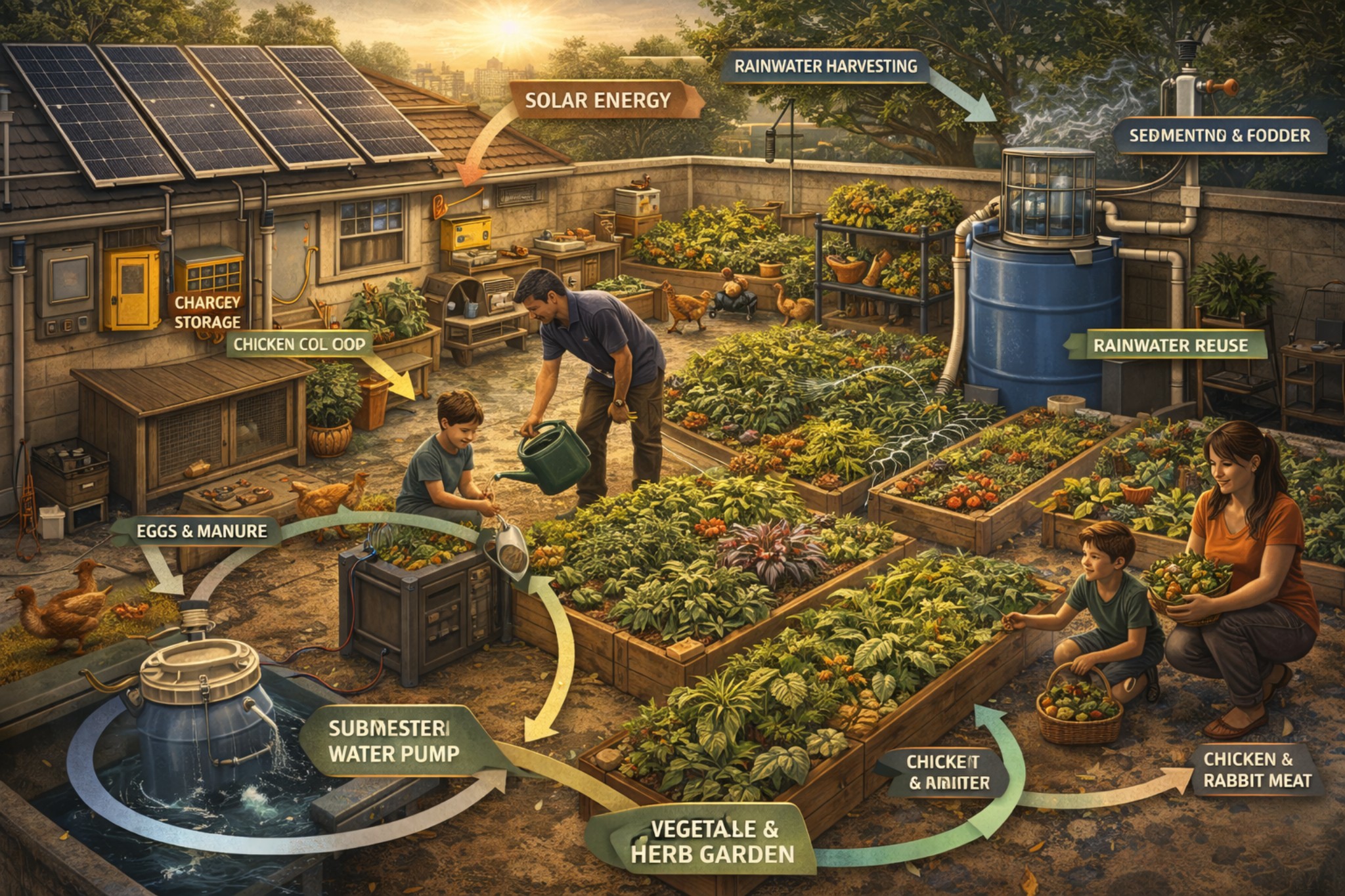 Self-Sustaining Home System (Sustainable Survival Living Infographic)